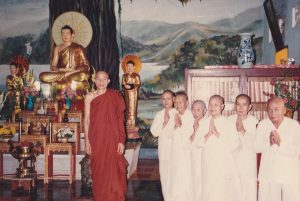 Sư tổ vỗ tay vào ghế nói: “Tội nghiệp nhỏ này từ sáng đến giờ còn ngồi đây hả? Con muốn tu phải có Ba Mẹ đến tác bạch đồng ý thì ngài sẽ nhận liền”. Lúc đó, trời đã chạng vạng tối, nhà sư bà thì trong làng quê cách chùa 3 km, sư tổ đã nhờ hai Phật tử đưa sư bà nhà.
